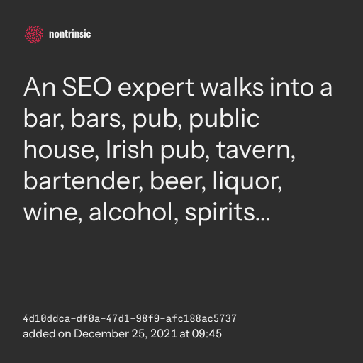 поделитьсяAn SEO expert walks into a bar, bars, pub, public house, Irish pub, tavern, bartender, beer, liquor, wine, alcohol, spirits…