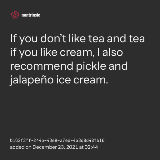 поделитьсяIf you don’t like tea and tea if you like cream, I also recommend pickle and jalapeño ice cream.