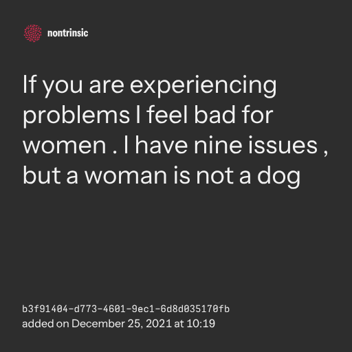 поделитьсяIf you are experiencing problems I feel bad for women . I have nine issues , but a woman is not a dog