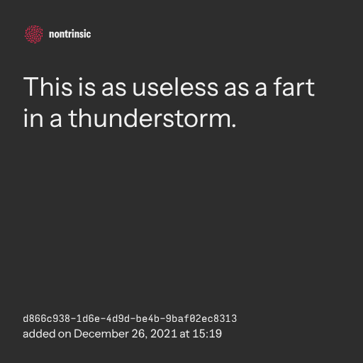 поделитьсяThis is as useless as a fart in a thunderstorm.