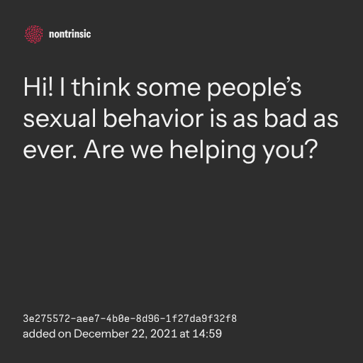 поделитьсяHi! I think some people’s sexual behavior is as bad as ever. Are we helping you?