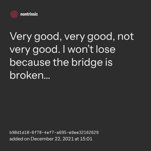 поделитьсяVery good, very good, not very good. I won’t lose because the bridge is broken…