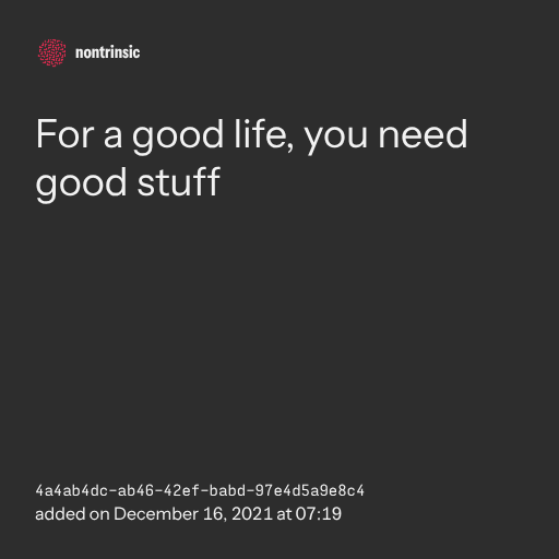 поделитьсяFor a good life, you need good stuff