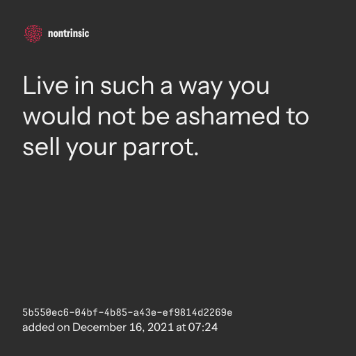 поделитьсяLive in such a way you would not be ashamed to sell your parrot.