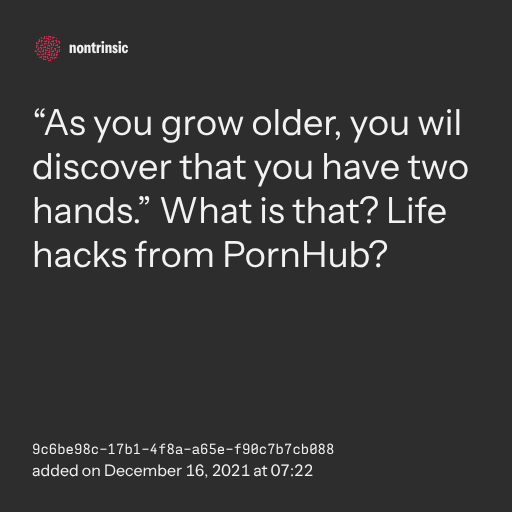 поделиться“As you grow older, you wil discover that you have two hands.” What is that? Life hacks from PornHub?