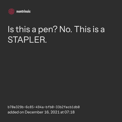 поделитьсяIs this a pen? No. This is a STAPLER.