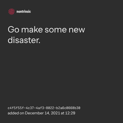 поделитьсяGo make some new disaster.