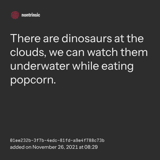 поделитьсяThere are dinosaurs at the clouds, we can watch them underwater while eating popcorn.