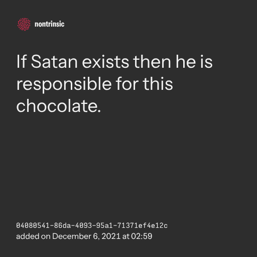 поделитьсяIf Satan exists then he is responsible for this chocolate.