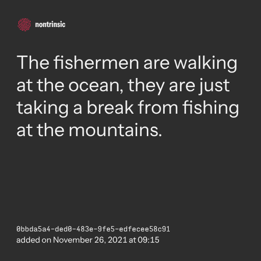 поделитьсяThe fishermen are walking at the ocean, they are just taking a break from fishing at the mountains.