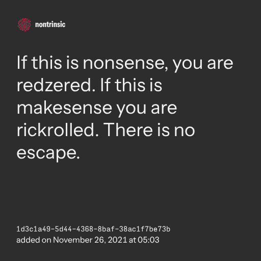 поделитьсяIf this is nonsense, you are redzered. If this is makesense you are rickrolled. There is no escape.