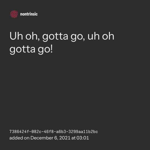 поделитьсяUh oh, gotta go, uh oh gotta go!