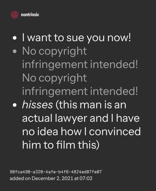 - hisses (this man is an actual lawyer and I have no idea how I convinced him to film this)
