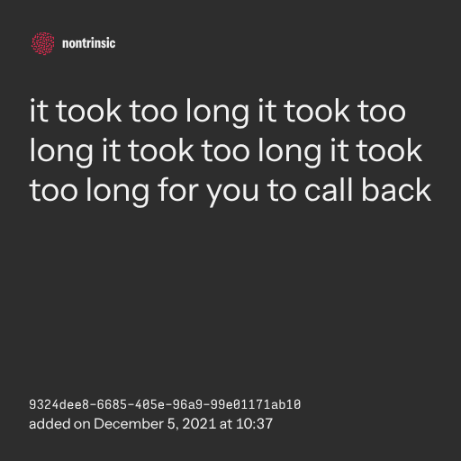 поделитьсяit took too long it took too long it took too long it took too long for you to call back