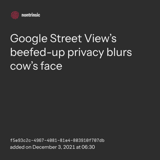 поделитьсяGoogle Street View’s beefed-up privacy blurs cow’s face