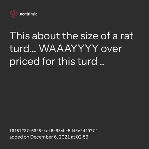 поделитьсяThis about the size of a rat turd… WAAAYYYY over priced for this turd ..
