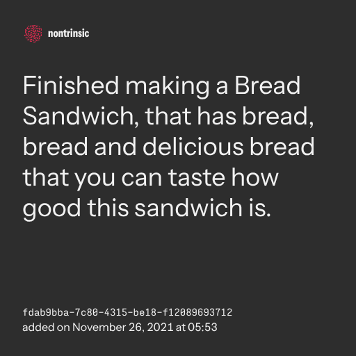 поделитьсяFinished making a Bread Sandwich, that has bread, bread and delicious bread that you can taste how good this sandwich is.