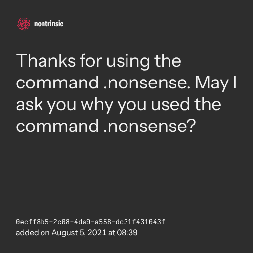 поделитьсяThanks for using the command .nonsense. May I ask you why you used the command .nonsense?