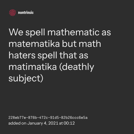 поделитьсяWe spell mathematic as matematika but math haters spell that as matimatika (deathly subject)