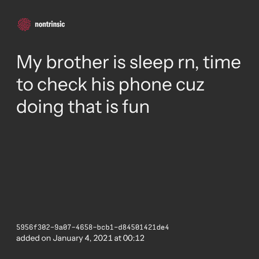 поделитьсяMy brother is sleep rn, time to check his phone cuz doing that is fun