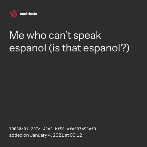 поделитьсяMe who can’t speak espanol (is that espanol?)