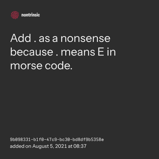 поделитьсяAdd . as a nonsense because . means E in morse code.