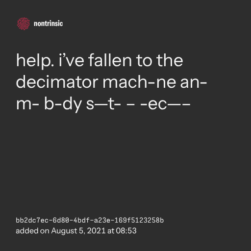 поделитьсяhelp. i’ve fallen to the decimator mach-ne an- m- b-dy s—t- – -ec—–