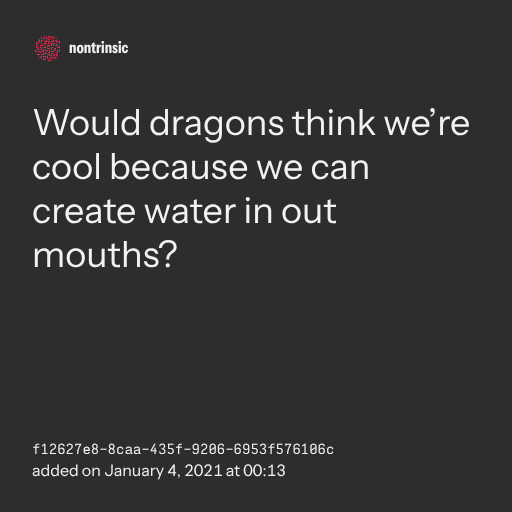 поделитьсяWould dragons think we’re cool because we can create water in out mouths?