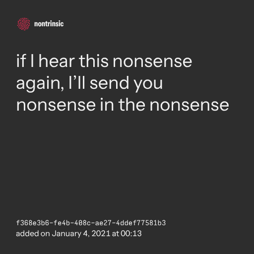 поделитьсяif I hear this nonsense again, I’ll send you nonsense in the nonsense