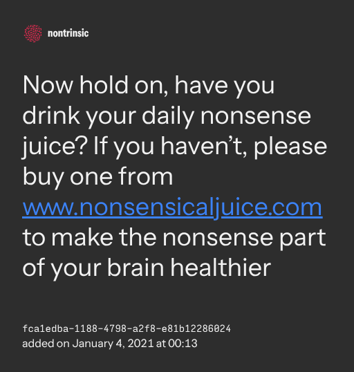 поделитьсяNow hold on, have you drink your daily nonsense juice? If you haven’t, please buy one from www.nonsensicaljuice.com to make the nonsense part of your brain healthier