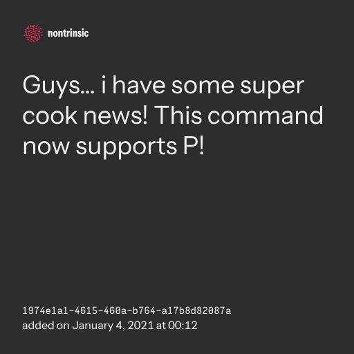 поделитьсяGuys… i have some super cook news! This command now supports P!