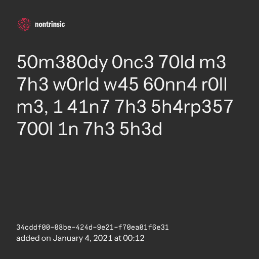 поделиться50m380dy 0nc3 70ld m3 7h3 w0rld w45 60nn4 r0ll m3, 1 41n7 7h3 5h4rp357 700l 1n 7h3 5h3d