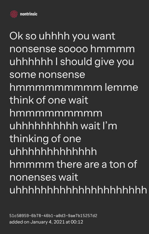 поделитьсяOk so uhhhh you want nonsense soooo hmmmm uhhhhhh I should give you some nonsense hmmmmmmmmm lemme think of one wait hmmmmmmmmm uhhhhhhhhhh wait I’m thinking of one uhhhhhhhhhhhhh hmmmm there are a ton of nonenses wait uhhhhhhhhhhhhhhhhhhhhh