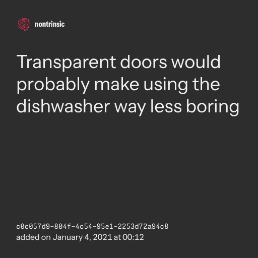 поделитьсяTransparent doors would probably make using the dishwasher way less boring