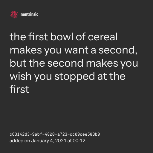 поделитьсяthe first bowl of cereal makes you want a second, but the second makes you wish you stopped at the first
