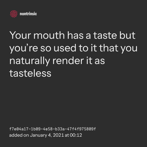 поделитьсяYour mouth has a taste but you’re so used to it that you naturally render it as tasteless