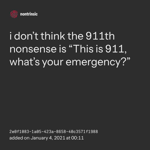 поделитьсяi don’t think the 911th nonsense is “This is 911, what’s your emergency?”