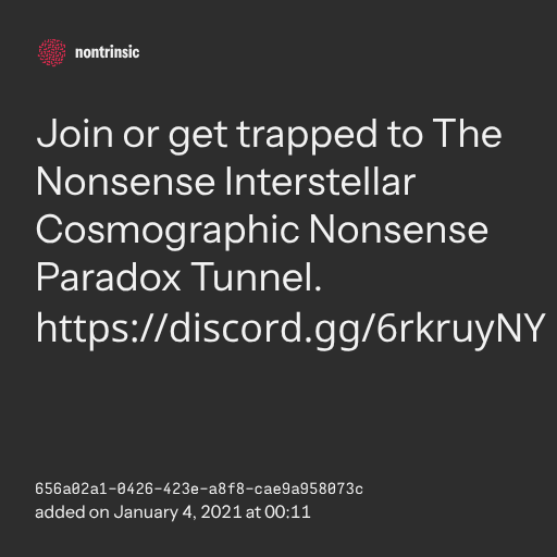 поделитьсяJoin or get trapped to The Nonsense Interstellar Cosmographic Nonsense Paradox Tunnel. https://discord.gg/6rkruyNY