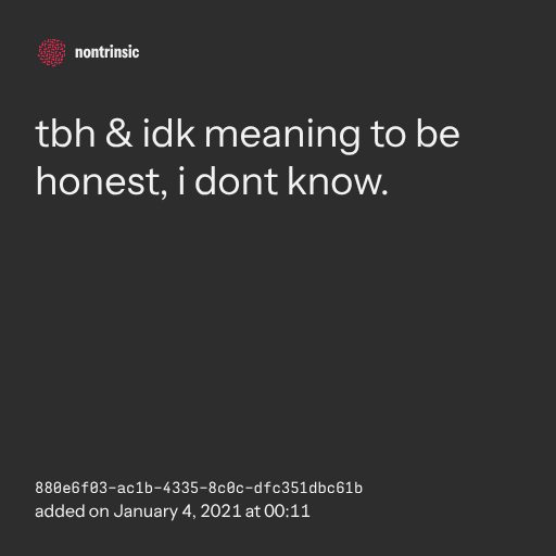поделитьсяtbh & idk meaning to be honest, i dont know.