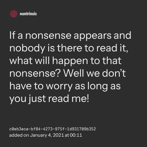 поделитьсяIf a nonsense appears and nobody is there to read it, what will happen to that nonsense? Well we don’t have to worry as long as you just read me!