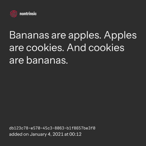 поделитьсяBananas are apples. Apples are cookies. And cookies are bananas.