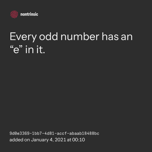 поделитьсяEvery odd number has an “e” in it.
