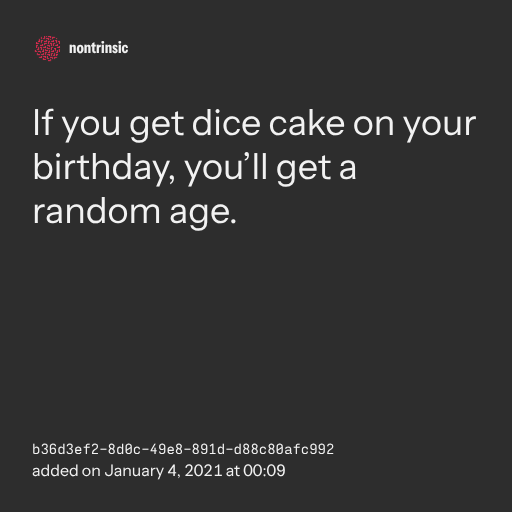 поделитьсяIf you get dice cake on your birthday, you’ll get a random age.
