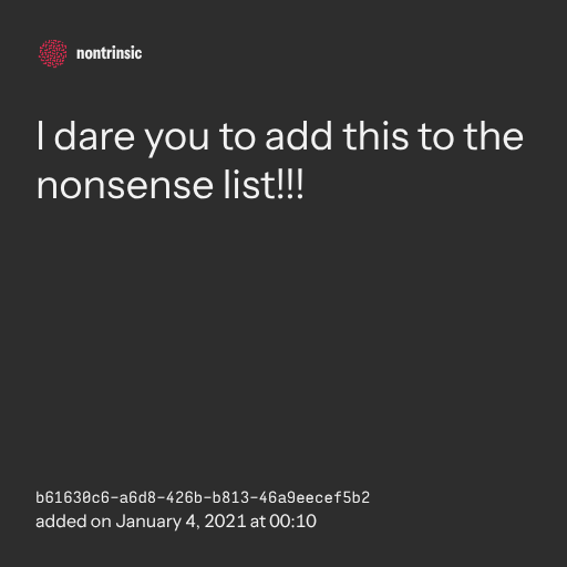поделитьсяI dare you to add this to the nonsense list!!!