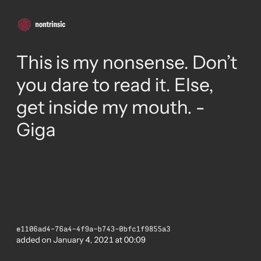 поделитьсяThis is my nonsense. Don’t you dare to read it. Else, get inside my mouth. - Giga