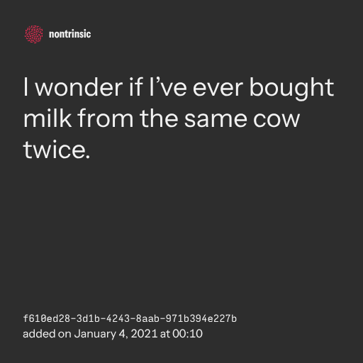 поделитьсяI wonder if I’ve ever bought milk from the same cow twice.