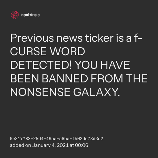 поделитьсяPrevious news ticker is a f- CURSE WORD DETECTED! YOU HAVE BEEN BANNED FROM THE NONSENSE GALAXY.