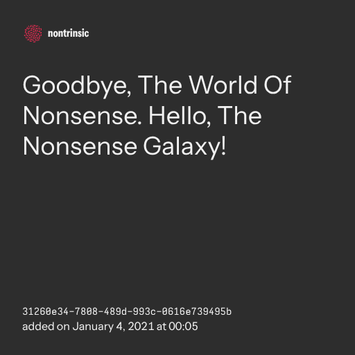 поделитьсяGoodbye, The World Of Nonsense. Hello, The Nonsense Galaxy!