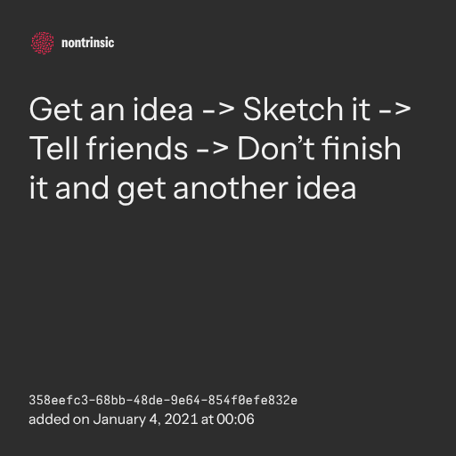 поделитьсяGet an idea -> Sketch it -> Tell friends -> Don’t finish it and get another idea