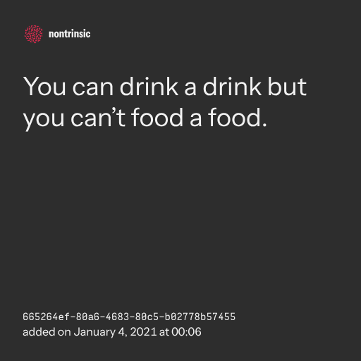поделитьсяYou can drink a drink but you can’t food a food.
